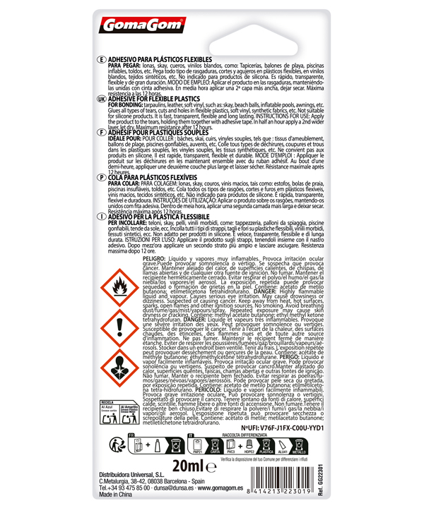 ADHESIVO PARA PLÁSTICOS FLEXIBLES 20ml