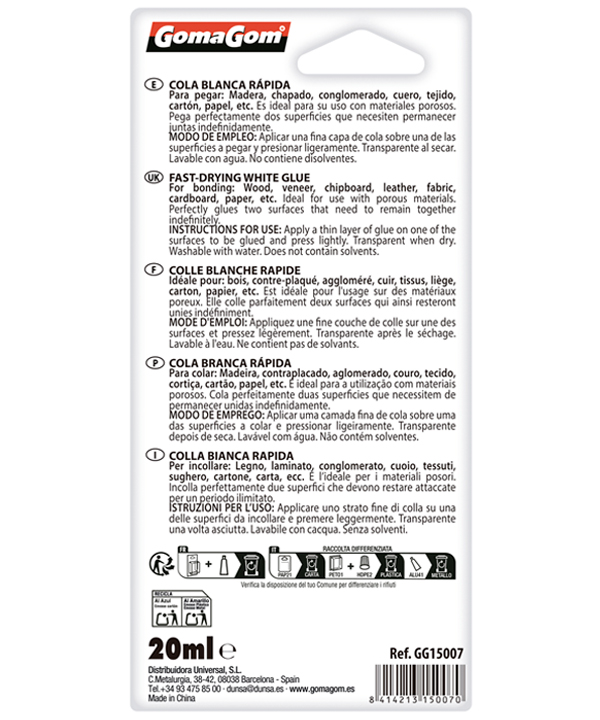 carton, papier, etc. La COLLE BLANCHE RAPIDE GomaGom est idéale pour l’usage sur